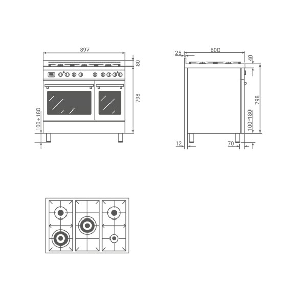 Boretti MFBG 902ZWBE 2 Fornuis gaskookplaat