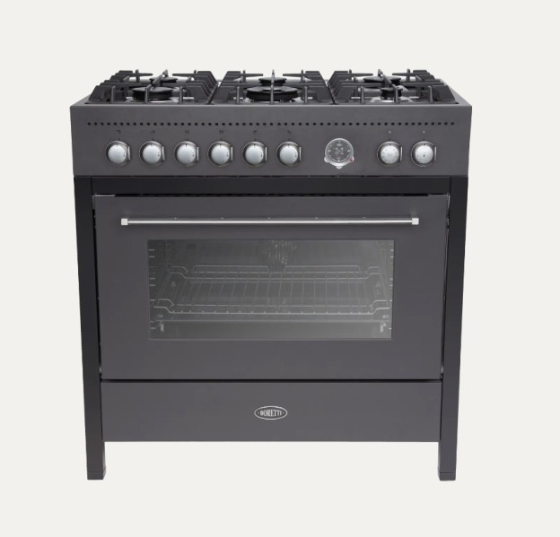90cm - Gas/Elektrisch - Mat Zwart - 6 kookzones - 1 oven - Pyrolytische reiniging - Fornuis gaskookplaat / Boretti CRG 916 MATBE