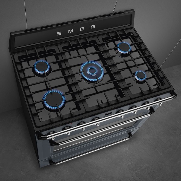 90cm - Gas/Elektrisch - Grijs - 5 kookzones - 1 oven - Hydrolytische reiniging - Fornuis gaskookplaat / Smeg TR 90GR 2