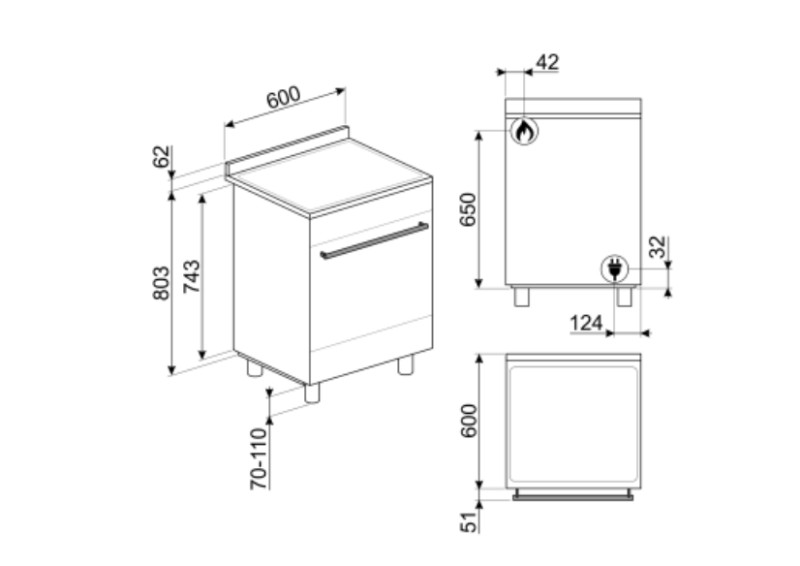 60cm - Gas/Elektrisch - Inox - 4 kookzones - 1 oven - Hydrolytische reiniging - Fornuis Gaskookplaat / Smeg C 6GMX 9