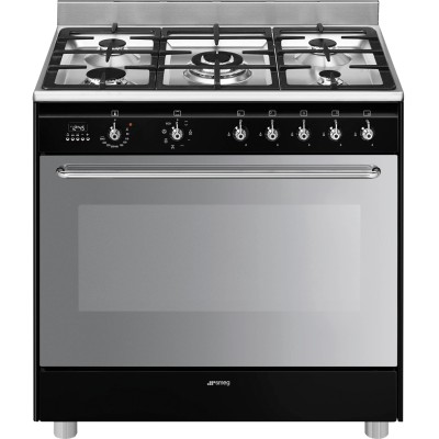 90cm - Gas/Elektrisch - Zwart- 5 kookzones - 1 oven - Hydrolytische reiniging - Fornuis Gaskookplaat / Smeg CX 91 GMBL