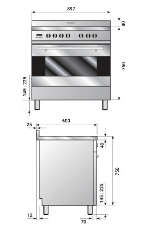 90cm - Inox - 4 kookzones - 1 oven - Fornuis Inductiekookplaat / Boretti