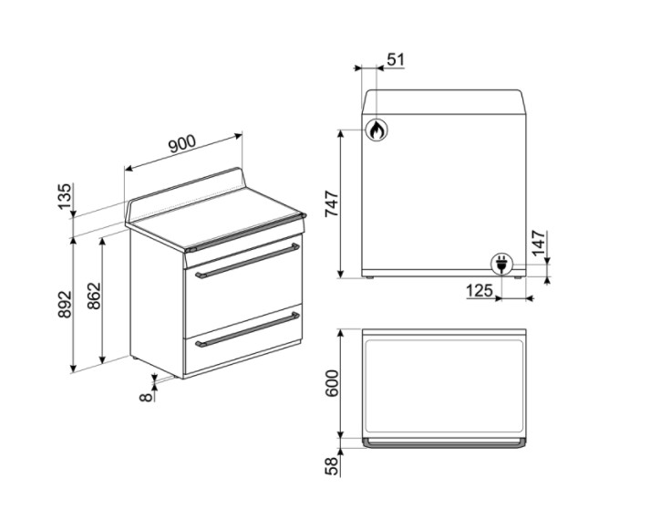 Categorie fornuis: 90x60 cm
