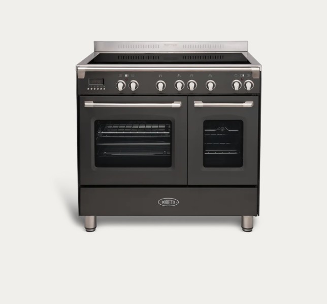 90cm - Antraciet - 4 kookzones - 2 ovens - Fornuis Inductiekookplaat / Boretti