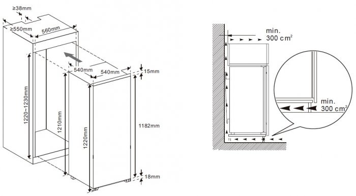 1m22 - Glijbevestiging - zonder vriesvak - 201L - Inbouw koelkast / Exquisit