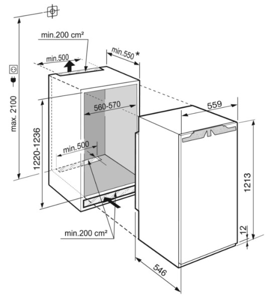 122cm - Deur op deur - zonder vriesvak - 203L - SoftClose deur - Inbouw Koelkast / Liebherr IRD 415060