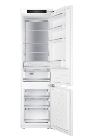 De BERLIN299 is een ruime inbouw koel- vriescombinatie met een netto inhoud van 267 liter. Het koelgedeelte van de kast bestaat uit 200 liter en beschikt over 5 legplateaus, 4 deurvakken en 2 groentelades. Het vriesgedeelte heeft een inhoud van 67 liter en bestaat uit 3 vriesladen. Doormiddel van de digitale thermostaat, kunt u eenvoudig de gewenste temperatuur instellen. Dankzij de No-Frost technologie blijven de producten langer vers en hoeft u niet meer handmatig te ontdooien. Daarnaast is de koelkast voorzien van LED-verlichting en is luxe afgewerkt met zilverkleurige accenten.