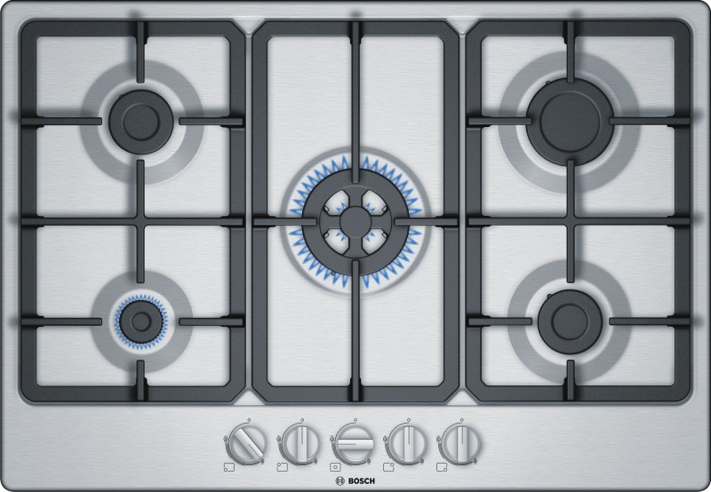 75cm - Zonder kader - 5 kookzones - Inox - Wokbrander - Gaskookplaat / Bosch
