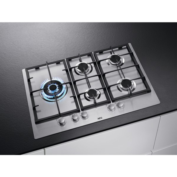 75cm - zonder kader - inox - 5 gasbranders - past in nis van 56 op 49cm - Gaskookplaat / AEG HGB 75501 UM