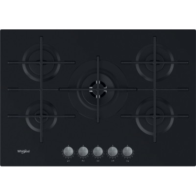 73cm - Gas op glas - 5 kookzones, waarvan 1 wokbrander - mat zwart - Gaskookplaat / Whirlpool GOWL 728 NB