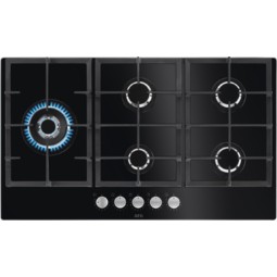 86cm - Gas op glas - 5 kookzones - Zwart - Wokbrander - Gaskookplaat / AEG HKB 95820 NB