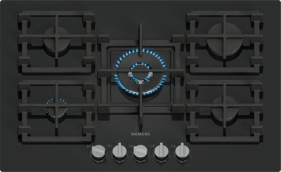 75cm - Zonder kader - Past in een nis van 56x48cm - Vlakbouw/Inbouw - 5 kookzones - Zwart - 1 wokbrander - Gaskookplaat / Siemens