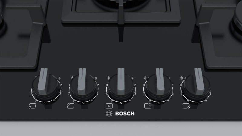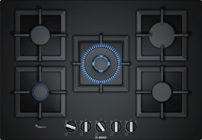 75cm - Gas op glas - Hardglas - 5 kookzones - Zwart - Wokbrander - Gaskookplaat / Bosch
