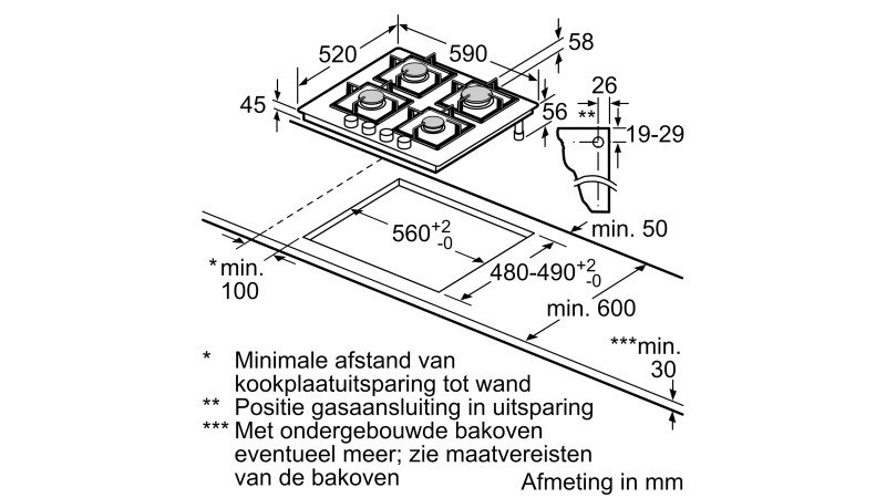 | Breedte kookplaat | van 55 tot 65 cm breed |