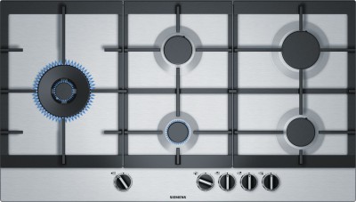 91cm - zonder kader - 5 kookzones - Inox - Wokbrander - Gaskookplaat / Siemens