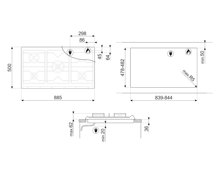Afmetingen van het product hxbxd (mm): 30x885x500