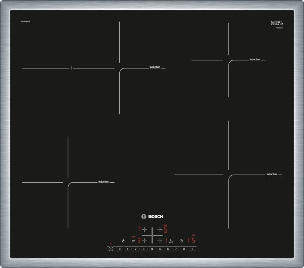 60cm - inox rand - 4 zones - Inductiekookplaat / Bosch