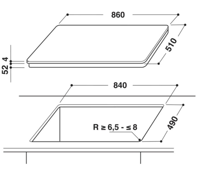 Uitsnijmaat werkblad (BxD): 840 x 490 mm