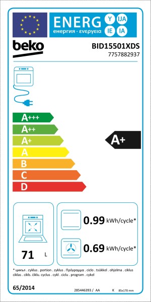Energieverbruik oven geforc. luchtconvectie (kWh): 0,69