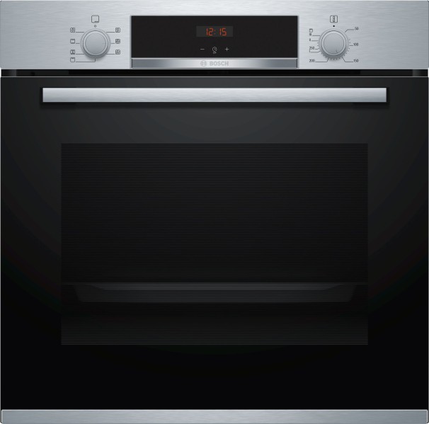 Bosch Standaard 60cm - A - inox - Hete lucht - EcoClean - 71L - rode display -5 verwarmingswijzen - elektronische klok - verzinkbare draaiknoppen HBA 533BS 1
