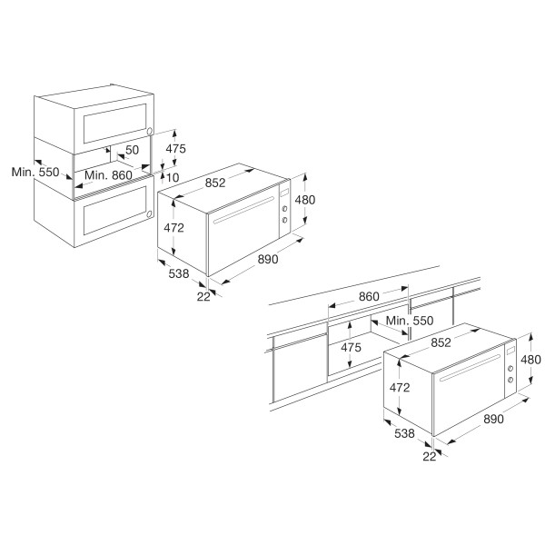 90cm breed + 45cm hoog - Hete Lucht - Hydrolytische reiniging - 77L - Inox - Multifunctionele oven / G