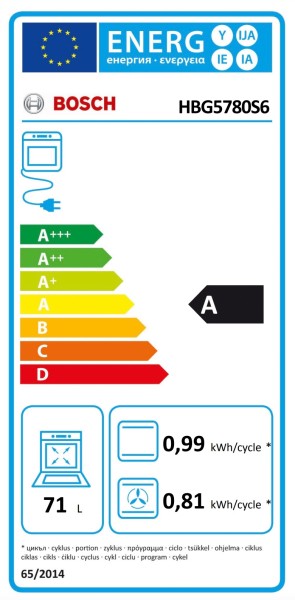 Energieklasse (volgens EU norm 65/2014): A(op een schaal