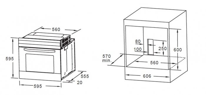 - Uitsparingsmaat (hxbxd) 570x560x600 [mm]