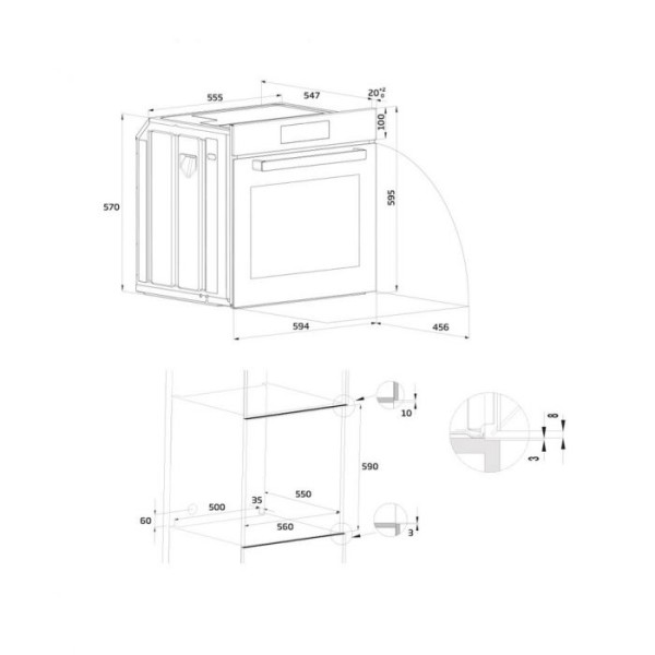 Afmetingen nis (H x B x D): 590x560x550 mm