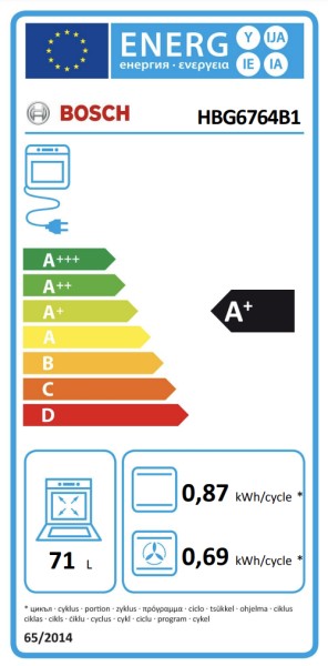 Energieklasse (volgens EU norm 65/2014): A+(op een schaal