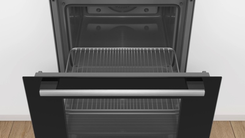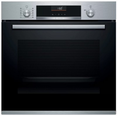 Standaard 60cm - Hete Lucht - 71L - Inox - geen klapdeksel vooraan maar een uitschuifbare bakwagen - Multifunctionele oven / Bosch HBB 536BS 0