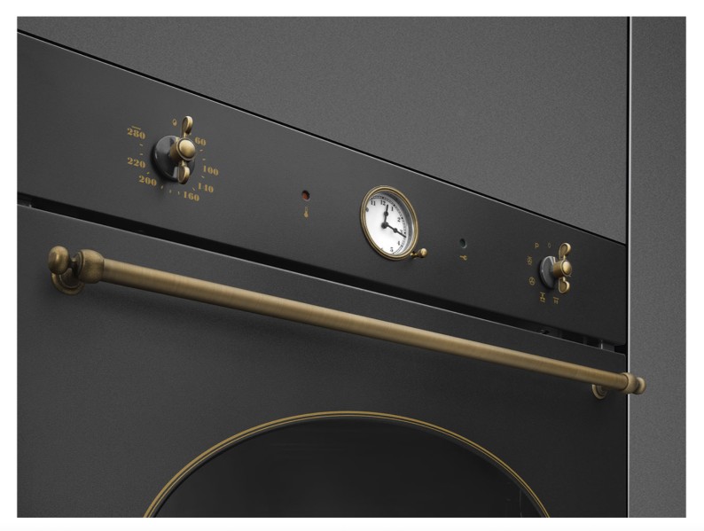 Standaard 60cm - Hete Lucht - Pyrolytische reiniging - Soft Close - Analoge Klok - Antraciet - Multifunctionele oven / Smeg