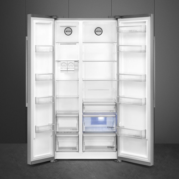 182cm - 92cm breed - NoFrost - Inox - Rechtsonder : enkel diepvries - Side by Side / Smeg FQ 60 XDF
