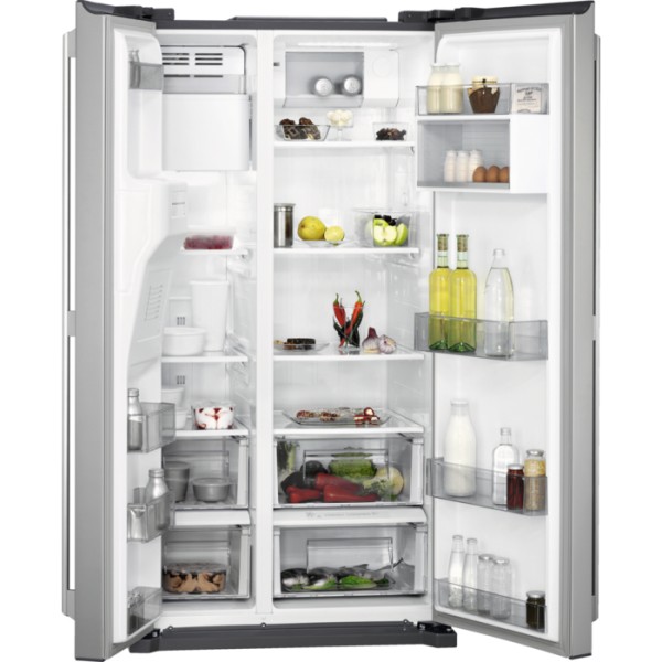 177cm - 91cm breed - 370L+179L - Inox - NoFrost - Water- en IJsverdeler via vaste wateraansluiting - Side by Side / AEG RMB 76121 NX
