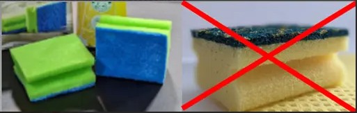 Gebruik nooit een gewone schuurspons, deze zal de kookplaat beschadigen. Gebruik een anti-kras spons, deze kunt u vaak herkennen aan de blauwe onderkant.