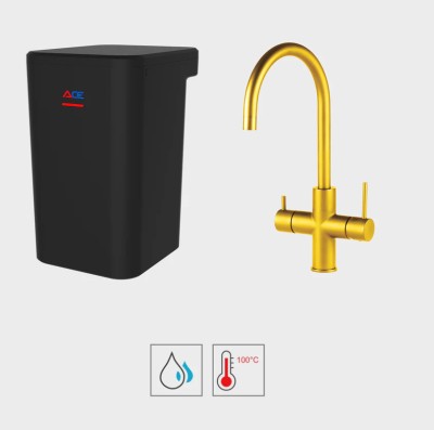 De Unito ACE.BOIL Classic C Goud biedt een ongeëvenaarde combinatie van stijl en functionaliteit in uw keuken. Dankzij deze kraan kunt u direct genieten van kokend, koud en warm water uit één enkele kraan. Dit slimme water systeem is ontworpen om niet alleen gemak te bieden, maar ook om uw keuken een moderne uitstraling te geven met zijn verfijnde afwerking in het goud. Met de kinderbeveiliging en andere veiligheidsvoorzieningen, zorgt het systeem ervoor dat uw gezin veilig blijft terwijl u geniet van de voordelen van direct kokend water. De energiezuinige stand-by modus en de gebruiksvriendelijke installatie maken deze kraan een ideale keuze voor elk huishouden.