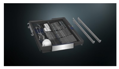 - Verlaagbaar element aan de rechterkant voor het opnemen van extra klein vaatwerk - Verbeterde flexibiliteit door twee gekleurde inklapbare tandenrijen aan de linkerkant - Inklapbare pennen aan de voorkant voor bestek met bredere handgrepen - Blauwgekleurde aanraakpunten: zie direct wat flexibel kan worden aangepast - Extra ruimte voor klein servies (bijv. kleine kommetjes, espressokopjes etc.) of groot bestek (bijv. pollepels, gardes, etc.) - Uittreksysteem met easyGlide wielen