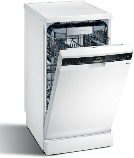 Besteklade - 43dB stil- wit - 45cm breed - Zeolith - Kort programma - Vrijstaande vaatwasser / Siemens