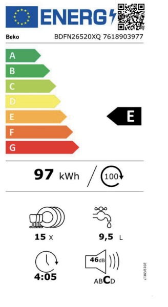 Energieverbruik 100 afwasbeurten Kwh: 97