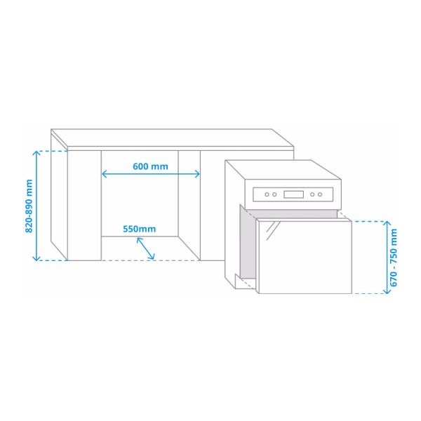 | Hoogte keukenpaneel (minimum) | 670 mm |