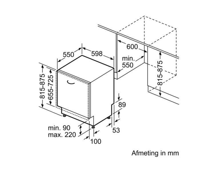 | Hoogte keukenpaneel (minimum) | 655 mm |