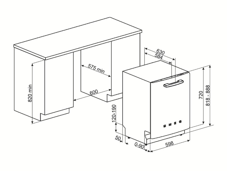 | Hoogte vaatwas + hieronder hoogte plint/sokkel aanduiden | 81,5cm tot 86,5cm (Standaard) (greeploze keuken: onderkant greeplijst tot vloer meten) |