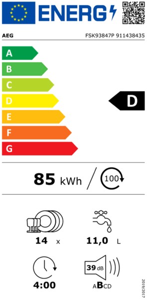 Besteklade - 39dB zeer stil - Comfortlift (de onderste korf komt vlot omhoog voor makkelijk in-en uitladen) - Schuifscharnieren - AirDry (deur opent automatisch 10cm in laatste droogfase) - Kort Programma - Volledig integreerbare vaatwasser / AEG FSK 93847 P