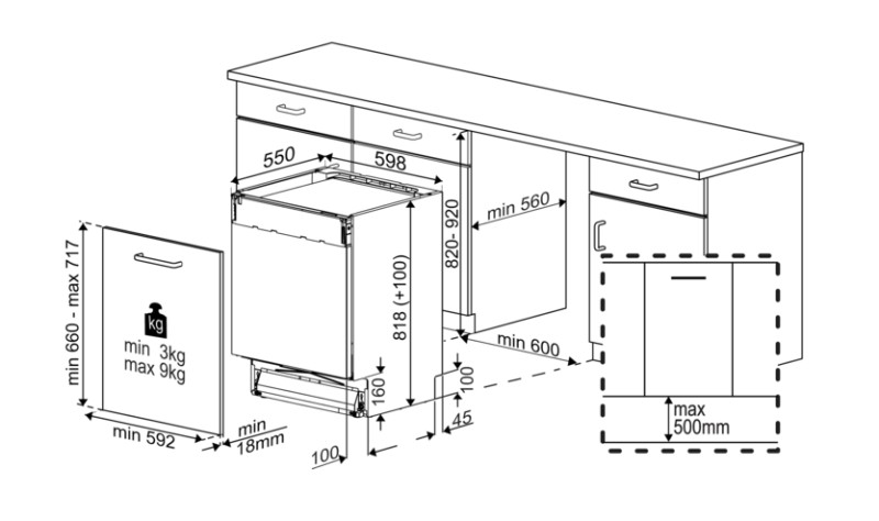 | Hoogte keukenpaneel (minimum) | 660 mm |