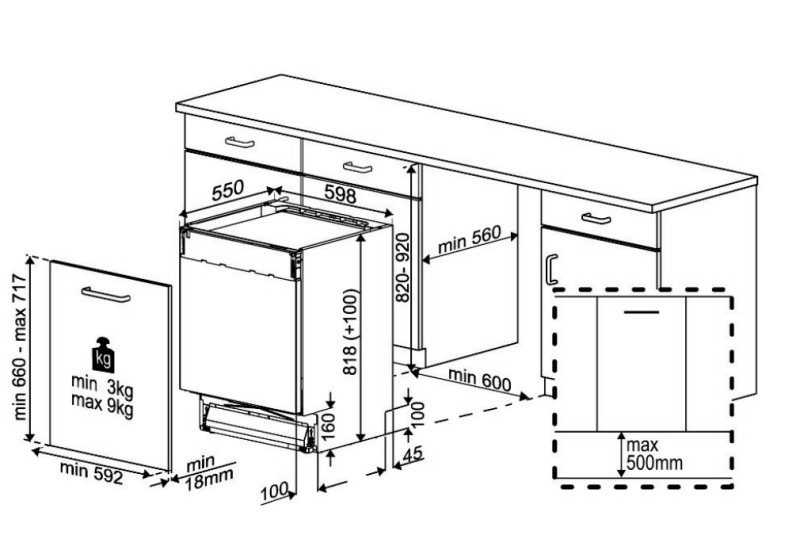 | Hoogte keukenpaneel (minimum) | 660 mm |
