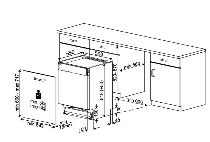 | Hoogte keukenpaneel (minimum) | 660 mm |