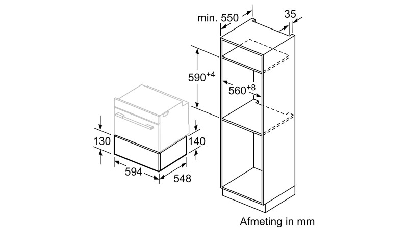Afmetingen toestel (HxBxD): 140 x 594 x 548 mm