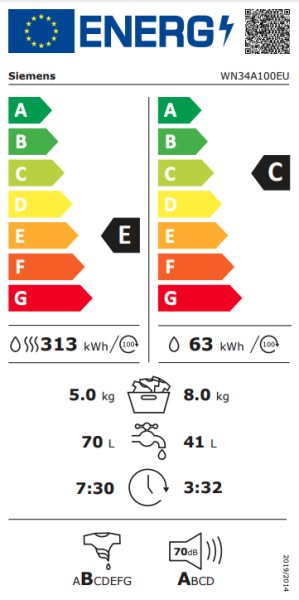 Algemene informatieEnergie efficiëntieklasse wassen en drogen¹: E